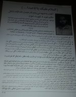 سلام گرم مرا به خانواده محترم شهدا و اسرا برسانید و بگویید که من همیشه از روی شما خجالت میکشیدم و از شما همگی برادران و دوستان، اساتید اخلاق و اخلاص میخواهم که مرا حلال کنید و از خدا برایم طلب مغفرت نمایید.